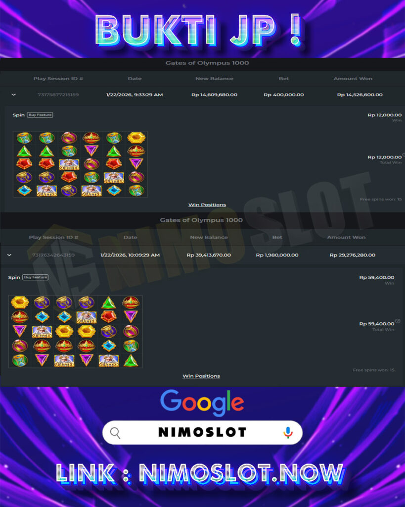 Apakah masih ada keraguan / khawatir bermain di NIMOSLOT ? HILANGKAN SEGERA karena bermain di nimoslot merupakan agen slot online terpercaya tanpa ada ragu kami ataupun bertele-tele kami membayar kemenangan berapapun yang member dapatkan . Maka dari itu tidak perlu menunggu lama Daftar dan Mainkan NIMOSLOT Sekarang Juga …
